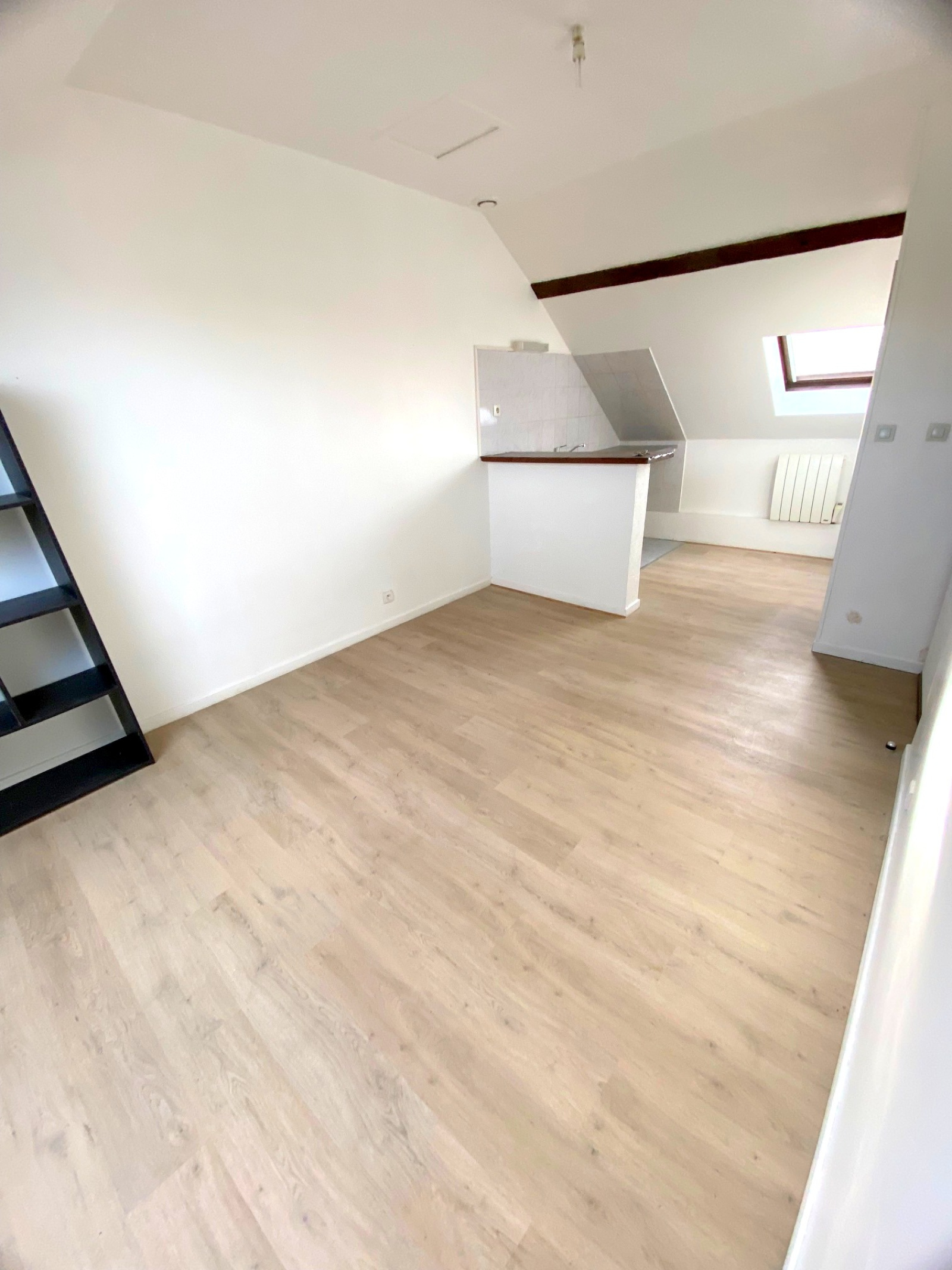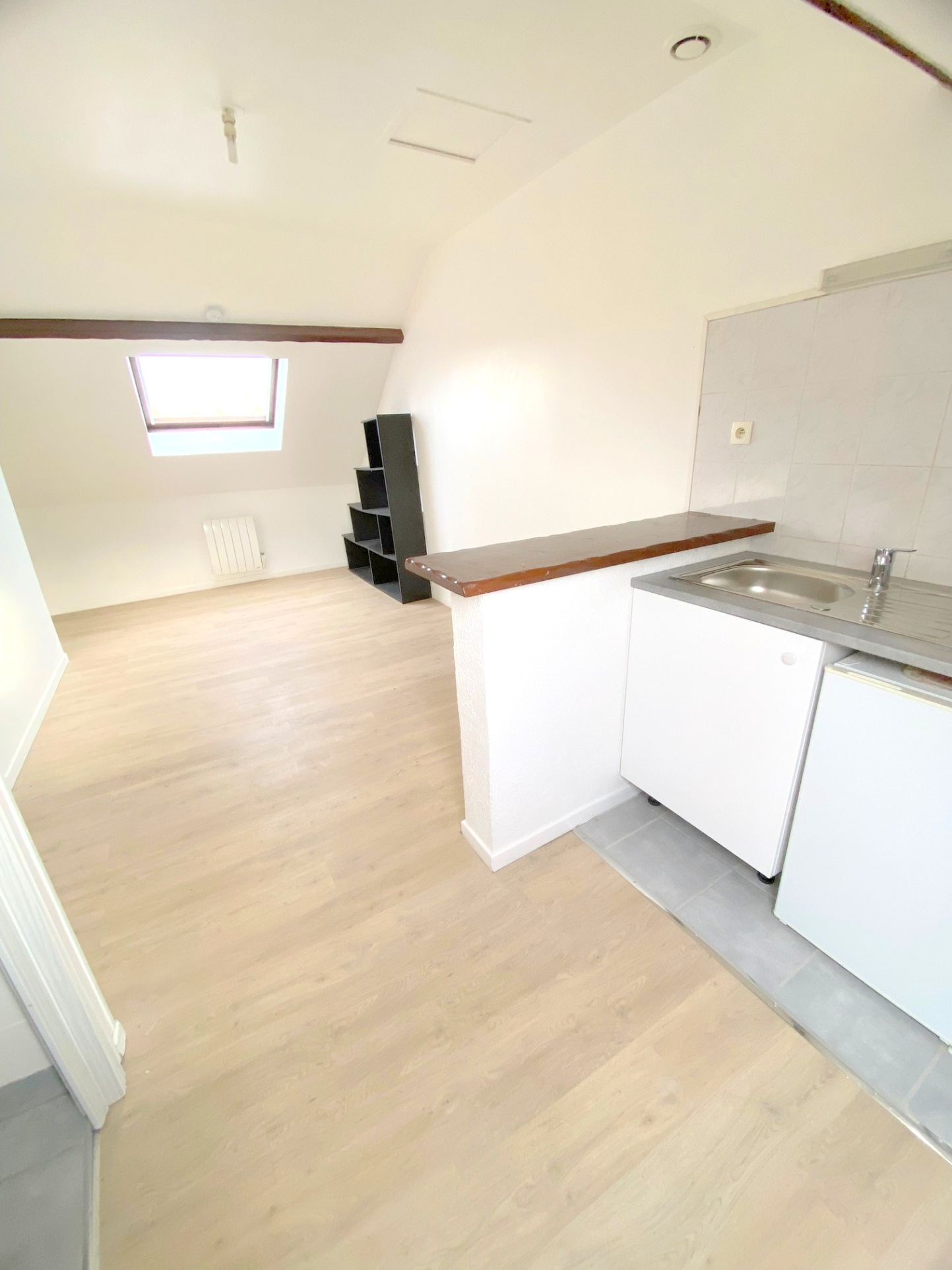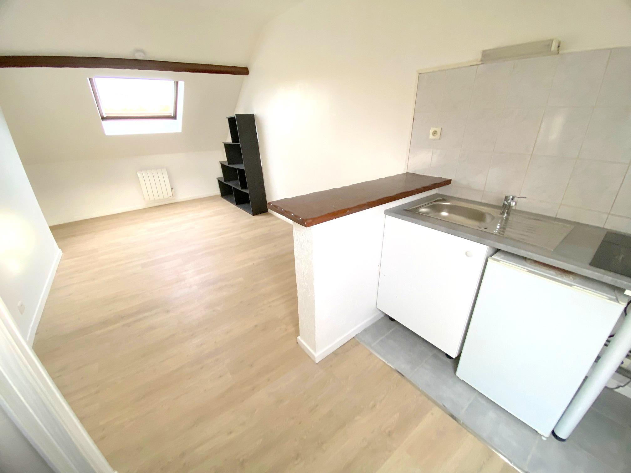 Studio dans un petit immeuble en retrait de rue au 1er étage sous combles.